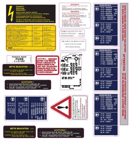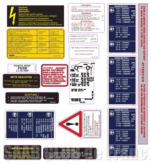 Autocollants constructeur pour SAAB 900 classique année 1991 1992 1993 1994