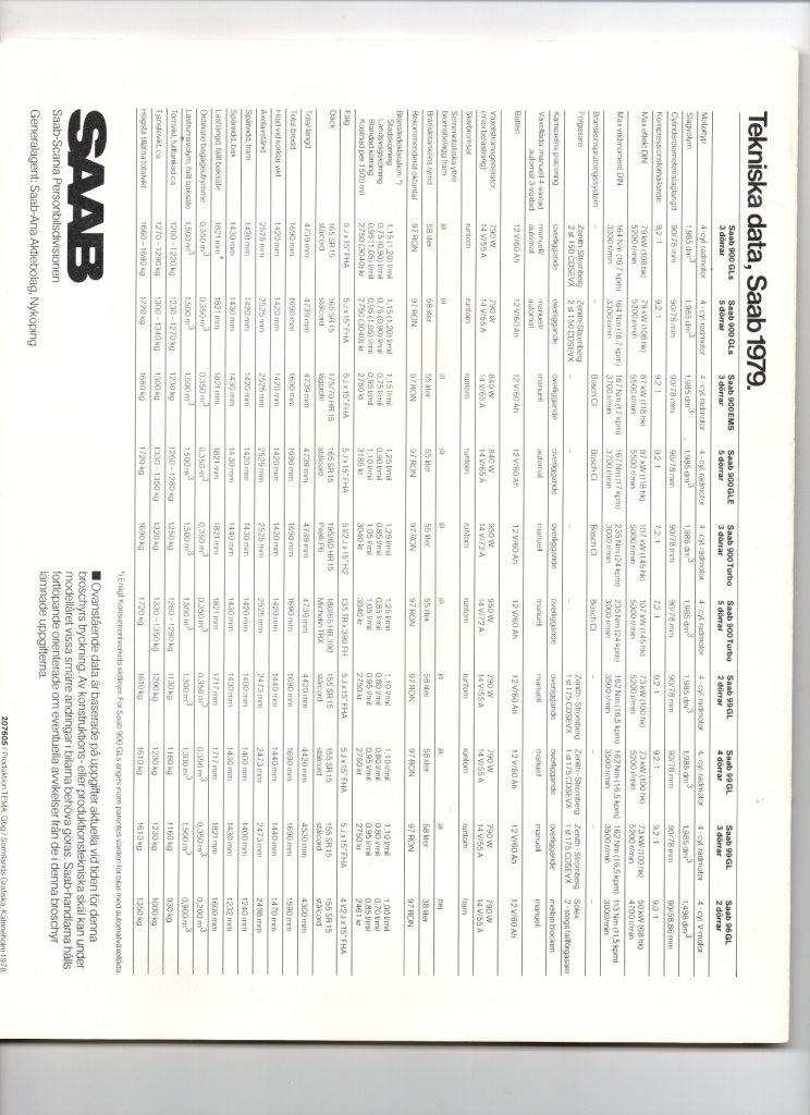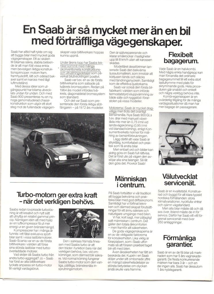 bROCHUE SAAB 900 TURBO 1979
