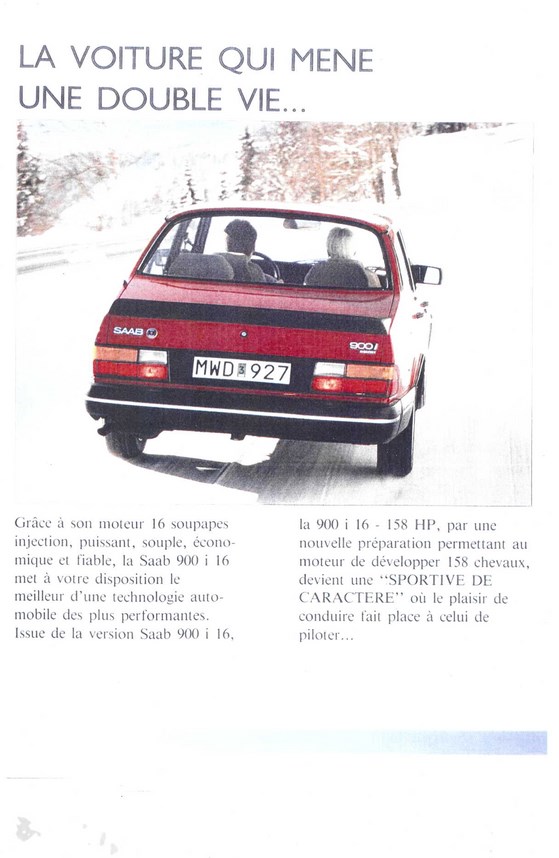 Voici la plaquette commerciale de la premiere SAAB 9000 sportive, la SP (sport et performance), modele rare et numéroté.......(moins de 300 exemplaires vendus)