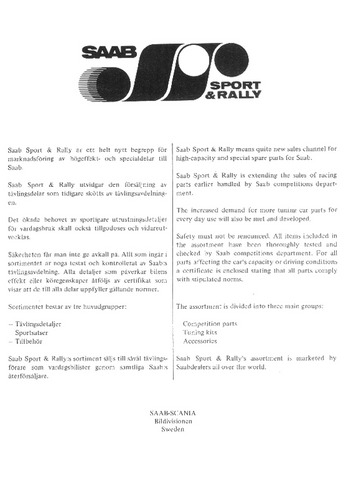 Ci joint a télécharger , le catalogue "Sport et Rally" pour SAAB 96 et 99