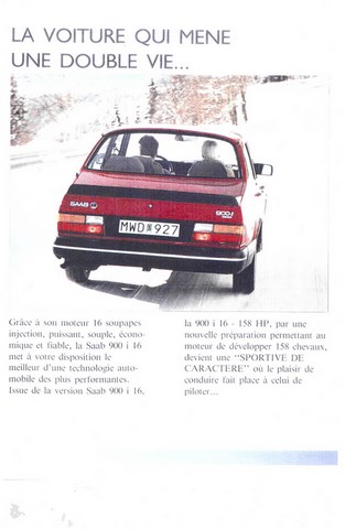 Afin de d'augmenter la puissance du moteur atmo 2l16v SAAB a confier en 1990 son moteur au préparateur EIA (préparateur FRANCAIS basé a CLAMARD)....la galerie photo ci dessous est la plaquette commercial SAAB de l'époque.